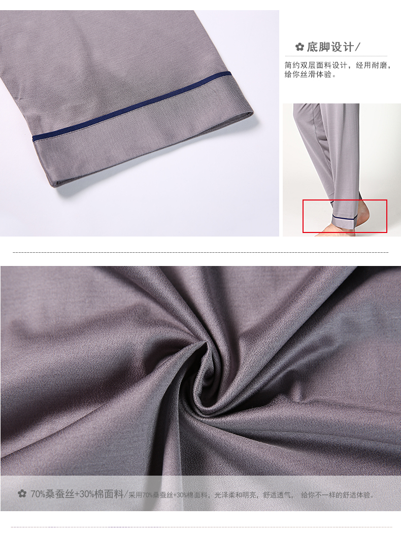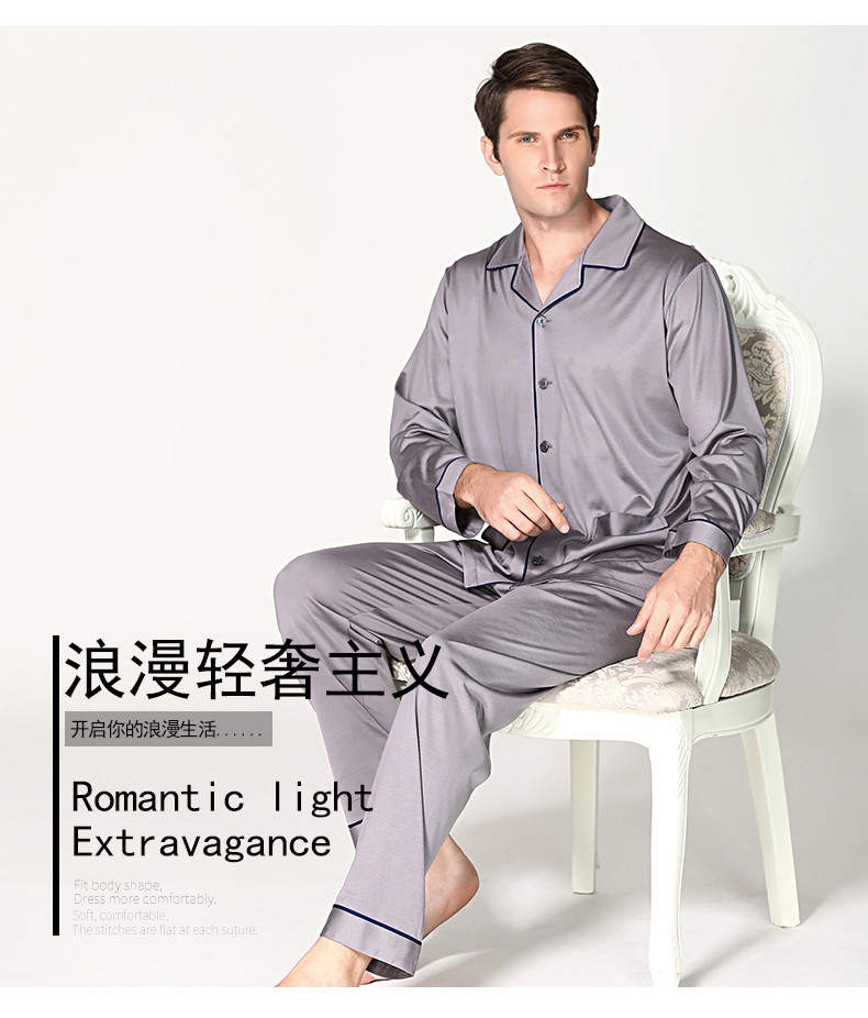 【75折清仓特卖】男士蚕丝睡衣长袖套装