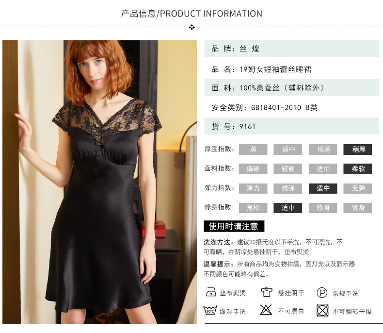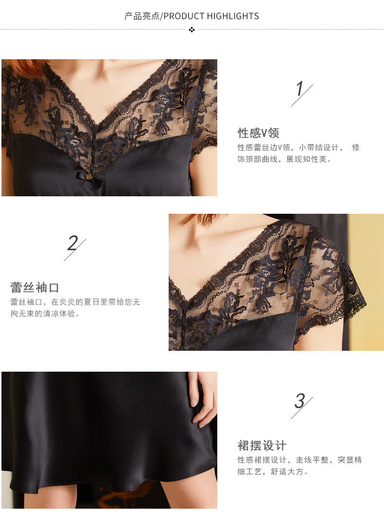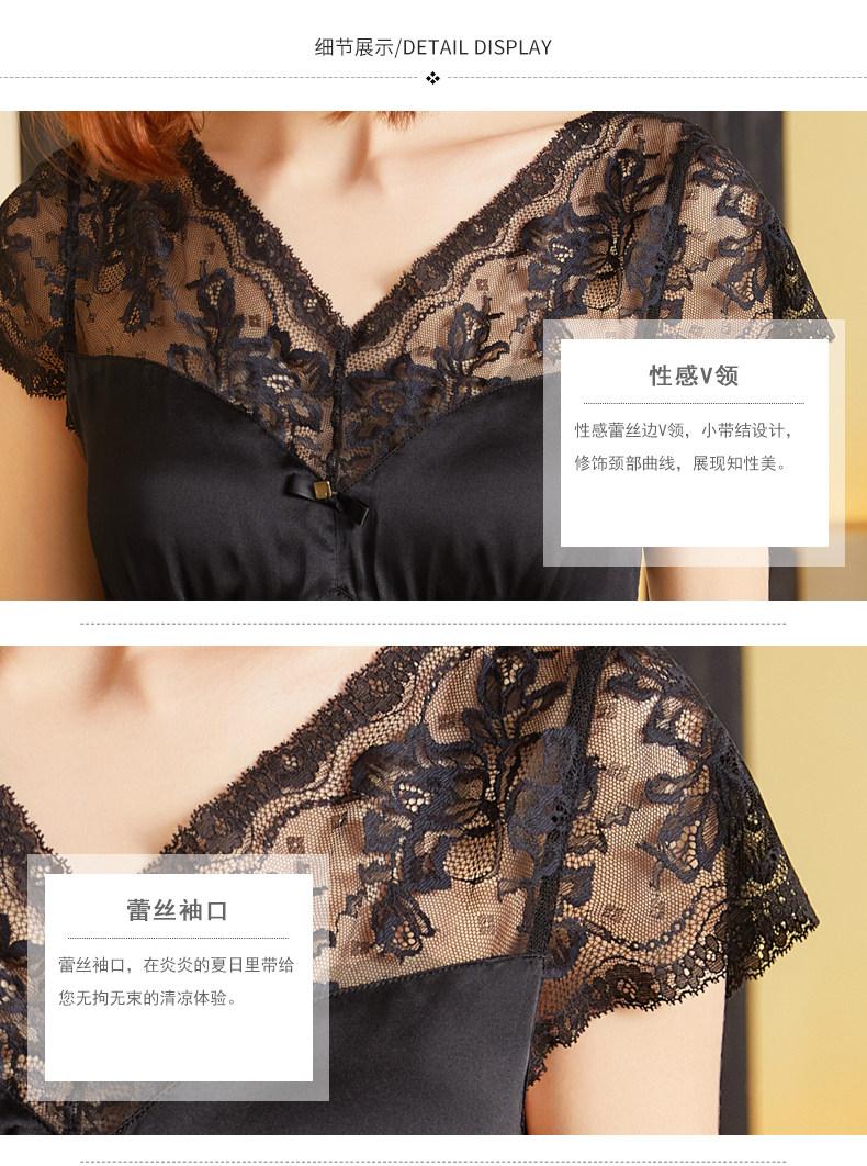 【75折清仓特卖】19姆短袖蕾丝真丝睡裙